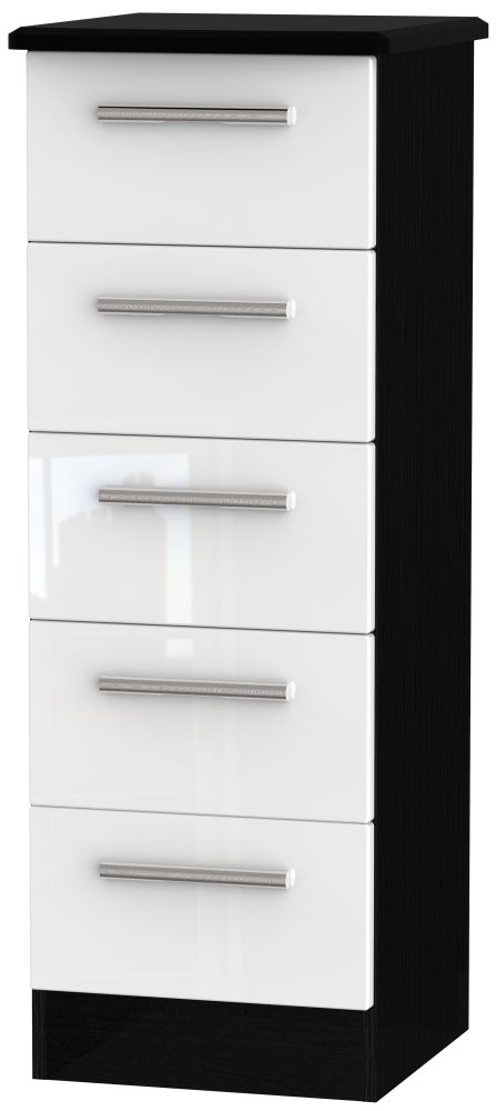 Knightsbridge White Gloss and Black 5 Drawer Narrow Chest