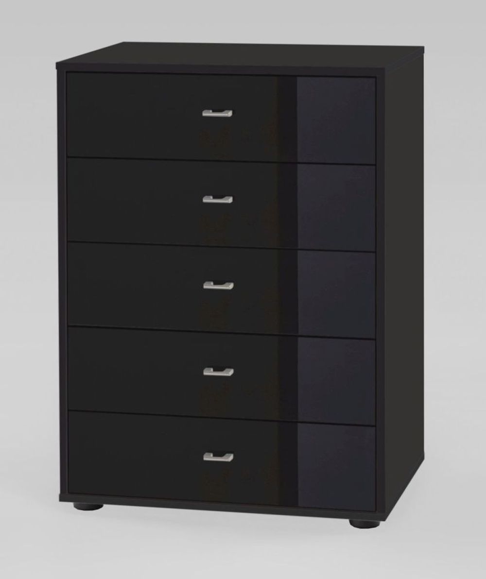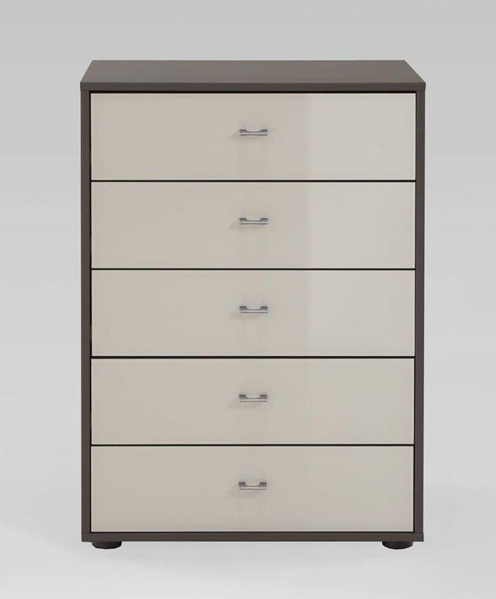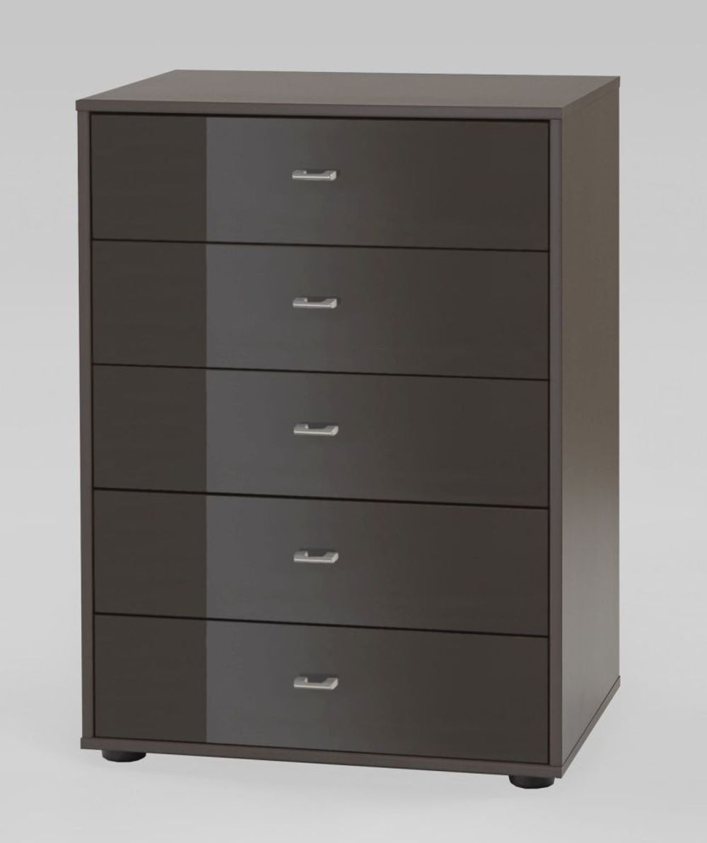 978 : 5 Drawer Chest with Dark Grey Glass Drawers and Chrome Handles