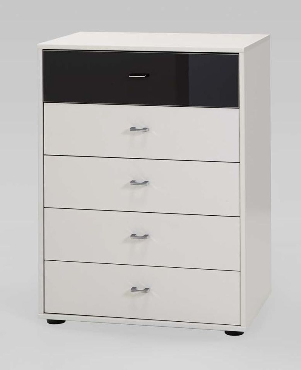 980 : 5 Drawer Chest with Dark Grey Glass Top Drawer and Chrome Handles