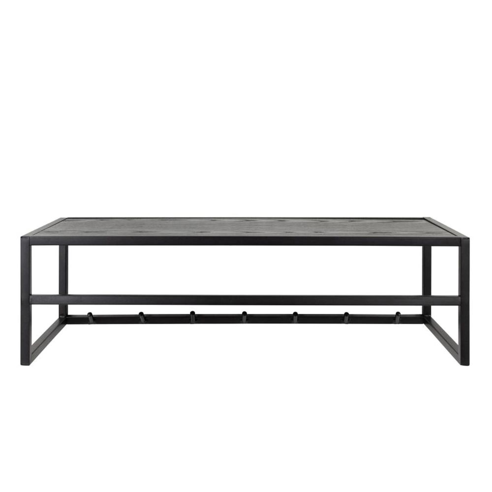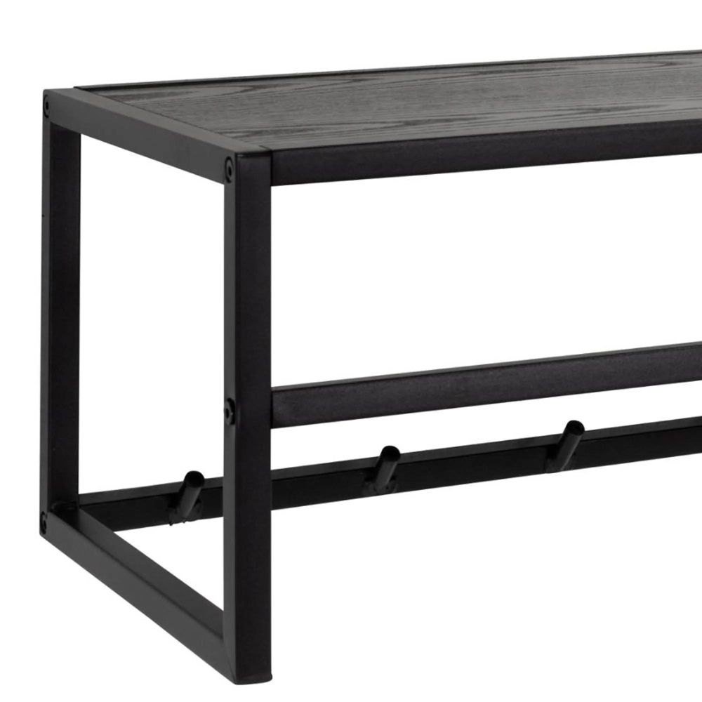 Seaford coat rack, frame matt black rough powder coated steel, shelf ash black rough melamine. This wall-mounted black coat rack represents a space-saving solution for the entrance and makes a stylish wall decor too. Designed in a modern industrial style, the frame is made of slim black steel. Besides the hooks for your outerwear, it also features a shelf, adorned in a black ash look, where you can keep your hats and small decor objects.Free Delivery
