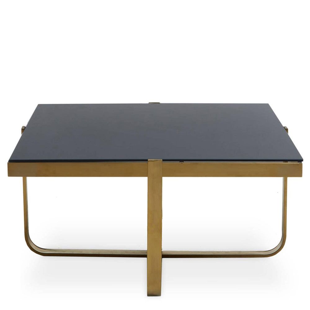 This coffee table with a sleek transitional design and luxe framing will add depth and glamour to home decor.Stainless steel in brushed gold finish forms the criss-cross base of this coffee table. The clean intersecting base supports the black tempered glass top in a smooth finish.
