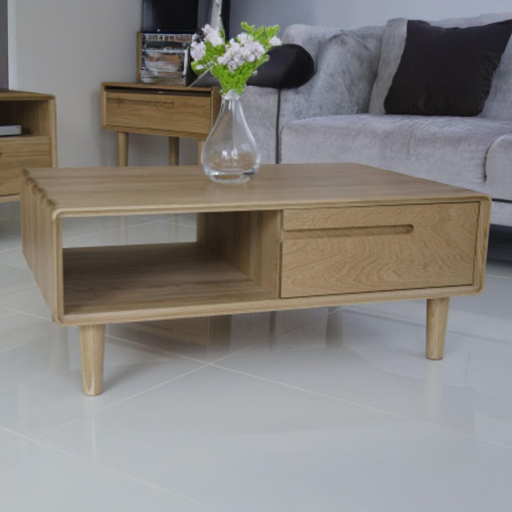 The Scandic Oak Storage Coffee Table combines natural beauty with everyday functionality. Crafted from solid oak and finished with a clear lacquer, it highlights the warm, light oak grain while providing a durable surface for your living room.