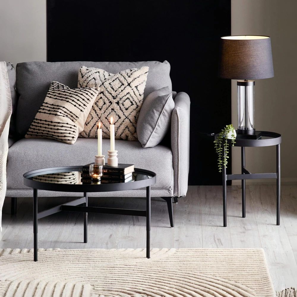 Item Code: FRA001 Upgrade your living room with the Franki Mirror Glass Coffee Table, a contemporary take on classic design. Its sleek mirrored tabletop brings a touch of glamour and adds a sophisticated shine, reflecting light and creating a spacious feel. The black metal frame offers a bold contrast, while the raised barrier design gives it a unique twist. This stylish piece is designed for easy assembly, making it a hassle-free addition to your home decor.