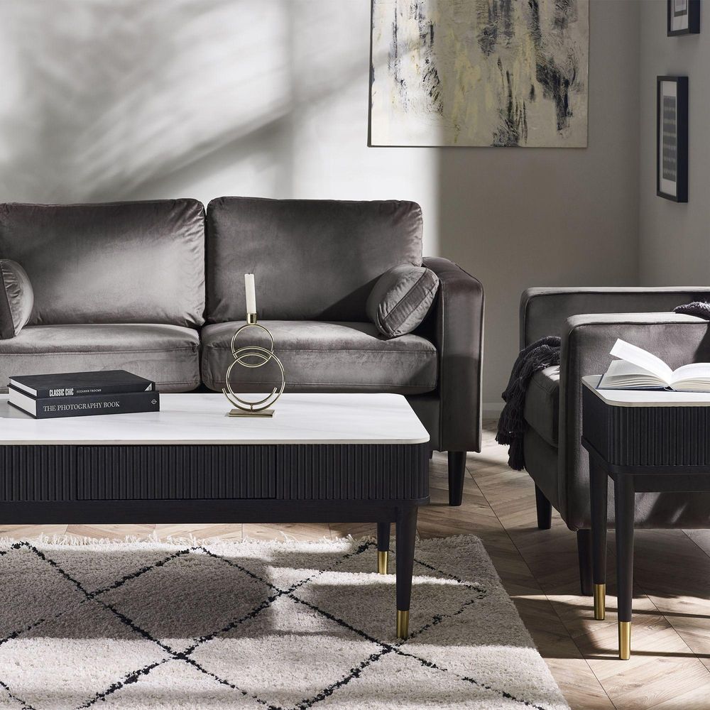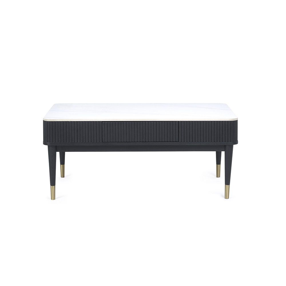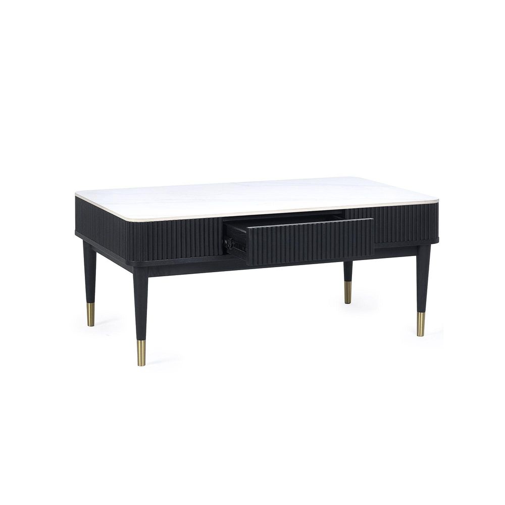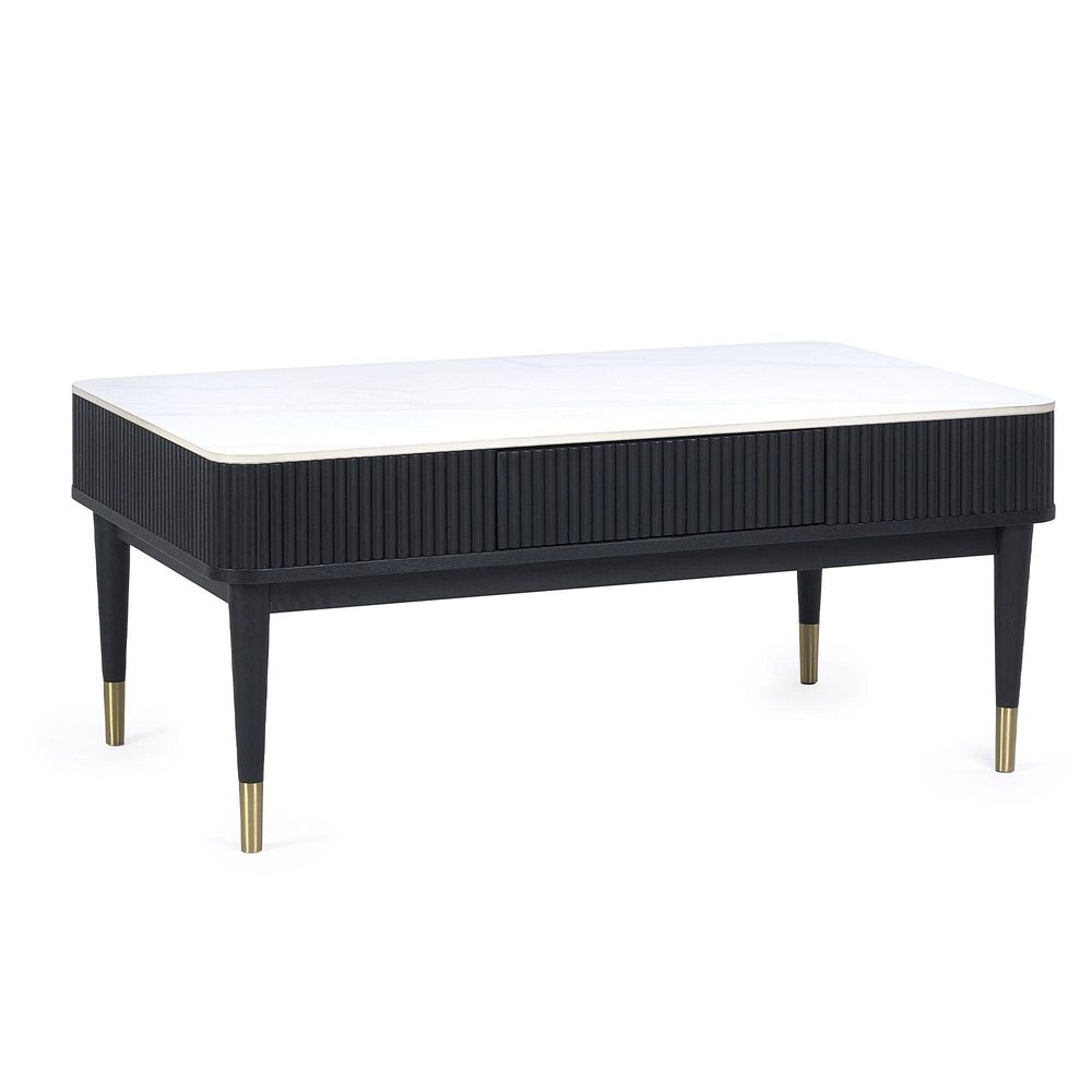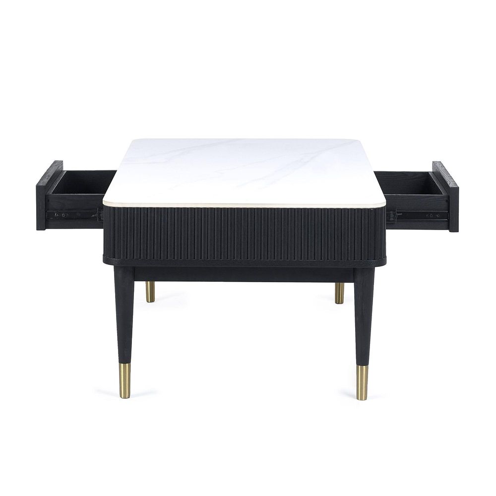 Louis Coffee Table - 2 Drawer - White Ceramic Top - Black Fluted Base
