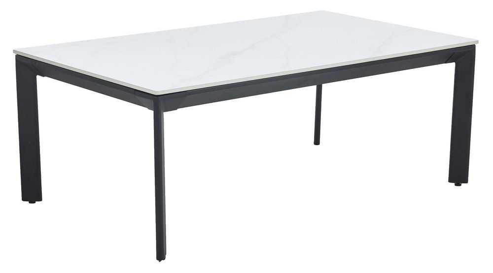 The rectangular version features a pristine white ceramic top paired with sleek black metal legs, creating a striking contrast that complements both modern and classic interiors. Its durable surface resists stains and scratches, making it as practical as it is stylish.