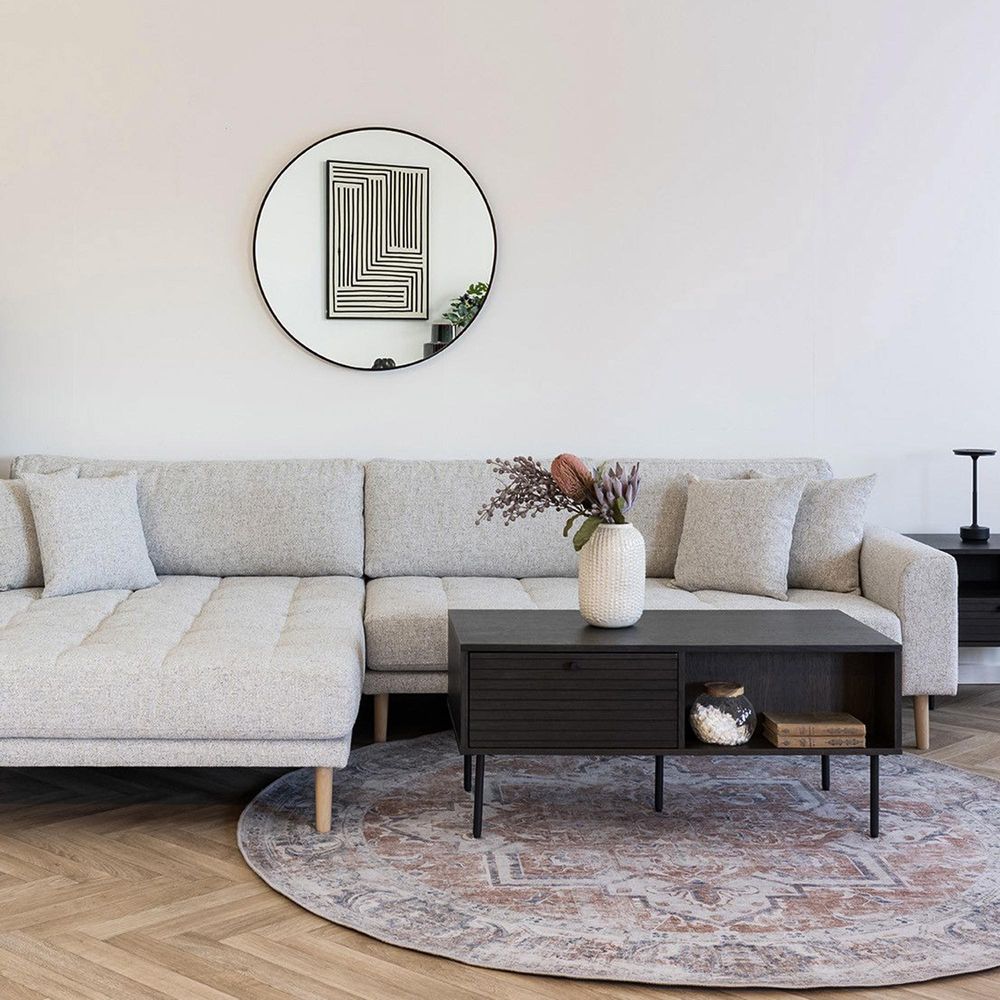 The Kyoto Smoked Oak 2 Drawer Coffee Table brings modern-rustic style to the centre of your living room. Crafted from high-quality oak veneer in a warm, smoked finish, it features ridged detailing and black metal legs for a clean, Scandinavian look. Two drawers and two open storage spaces keep everyday essentials close to hand, while its two-sided design allows easy access from either sofa position. Neutral in tone and space-saving in structure, this table suits minimalist and contemporary interiors with ease.