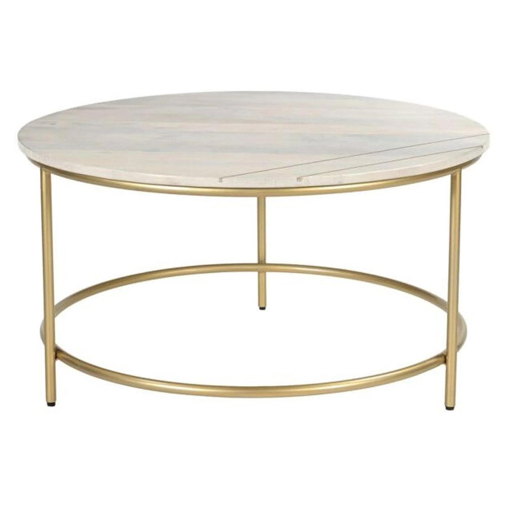 Bring modern luxury into your living room with the Buxton Pale Acacia Wood and Gold Round Coffee Table. A true blend of beauty, craftsmanship, and function, this table is designed to be cherished for years to come. Order today and make it the centrepiece of your home.