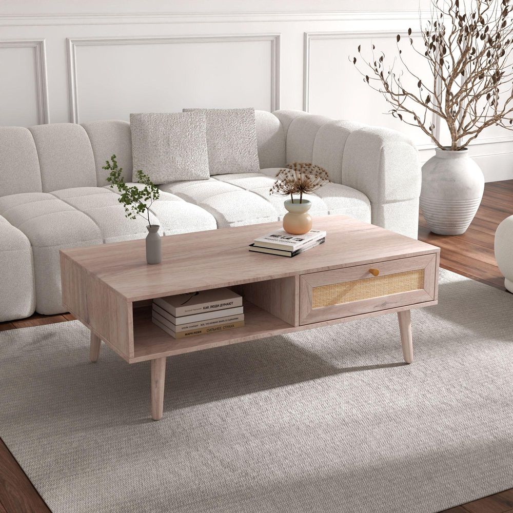 Clearance - Ferrero Natural and Woven Rattan 1 Drawer Coffee Table
