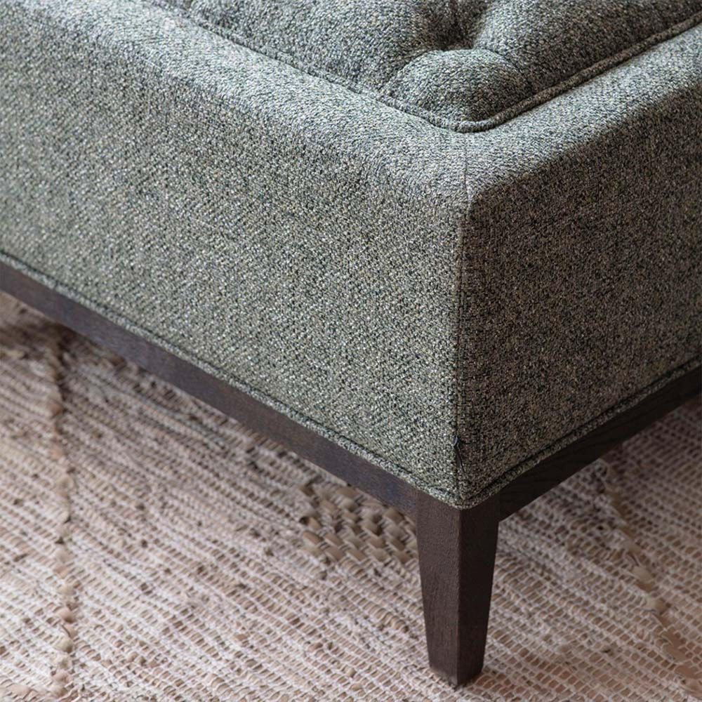 Item Code: 706088 Joining the Theodore collection, the XL Ottoman is now offered in Forest Green. Its woven fabric combines green and dark grey threads, resulting in a textured, earthy finish. With deep buttoning and piped edges, this piece is perfect as a coffee table or for additional seating. It sits on a solid deep brown wooden frame and requires simple self-assembly. Also available in Dark Taupe, Ivory and Warm Grey.