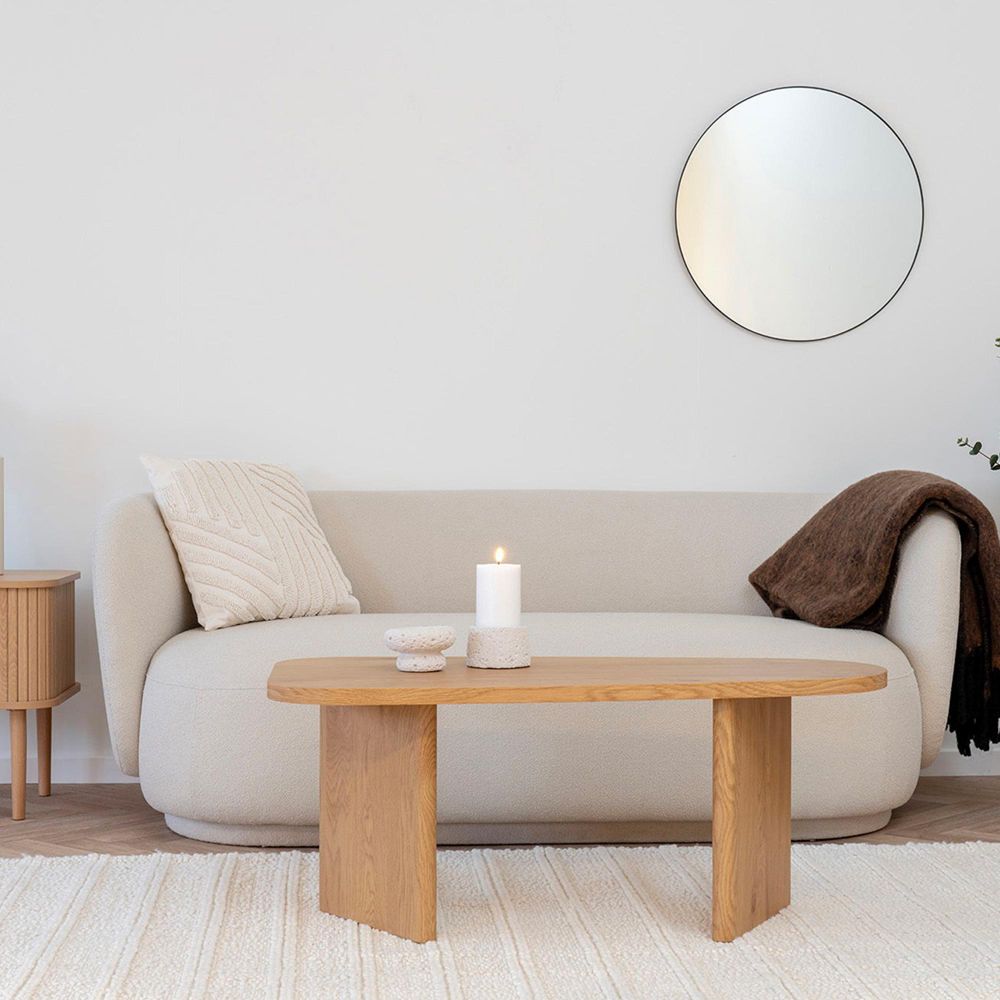 Crafted from high-quality MDF with an oak-effect top and asymmetrical legs, this coffee table showcases a natural wood finish that highlights the grain and texture of the material. Its design is influenced by Scandinavian simplicity, featuring clean lines, rounded edges, and a balanced form that seamlessly blends into modern and contemporary interiors. Perfect for everyday use or entertaining guests, the Melo Coffee Table offers durability without compromising style.