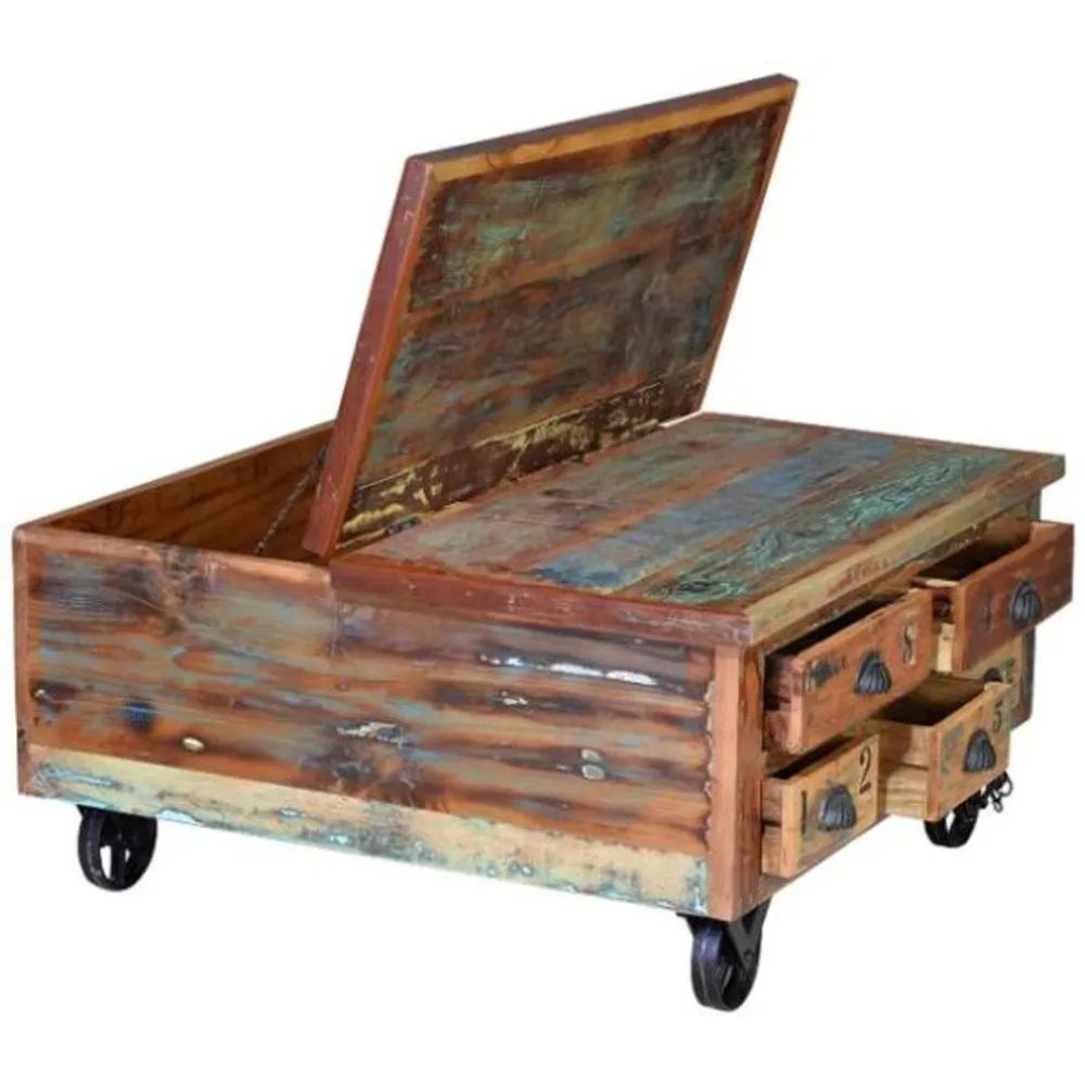 Item Code: 6300 Coffee Table With 5 Drawers From The Verrier Collection In Recycled Wood, With Top Opening And Large Storage Capacity