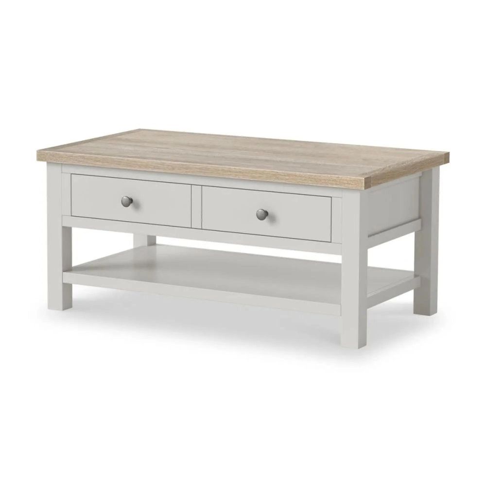 Enhance your living space with the Modern Grey Painted Storage Coffee Table, a stylish and practical centerpiece for your lounge or sitting area. Crafted from solid wood and oak, this table combines durable construction with elegant design, offering both everyday functionality and timeless appeal.