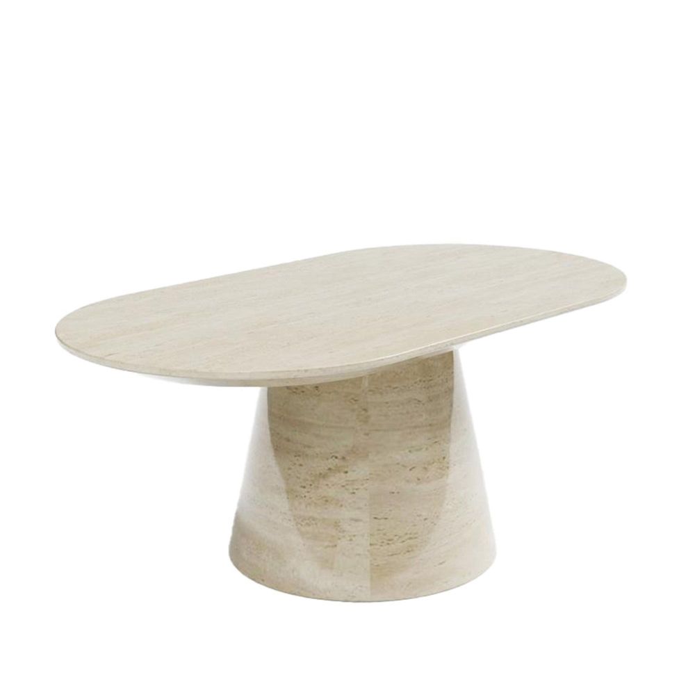 Expertly crafted from solid marble, the polished beige stone tabletop showcases natural veining and unique textures, ensuring no two pieces are alike. Its softly contoured oval shape creates a graceful silhouette, while the bold cone pedestal base offers both stability and a statement look. Built for longevity, the Carrera is more than just a coffee table—it’s a lasting investment in style and quality.