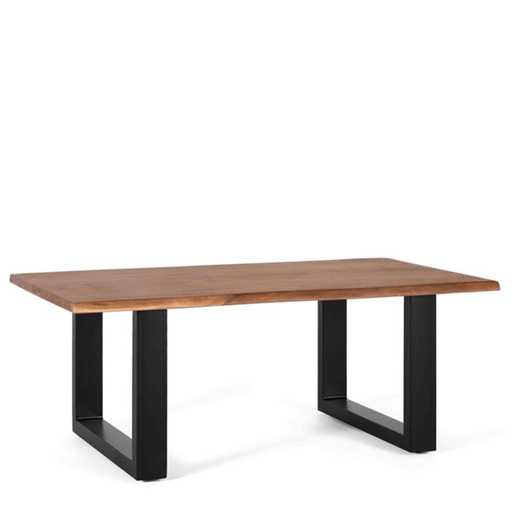 Item Code: 1769 Solid Acacia And Black Metal Cemtrp Table.This Table Fuses Natural Warmth With Industrial Modernity. The Acacia Wood Showcases Its Unique Grains, While The Metal Legs Offer Stability And A Contemporary Touch. The Edges Of The Table Are Irregular, Which Indicates That They Do Not Follow A Perfectly Straight And Uniform Line, These Irregularities Add A Touch Of Rusticity And Authenticity To The Design Of The Table. It Is A Perfect Combination Of Style And Durability, Ideal For Any Living Room.