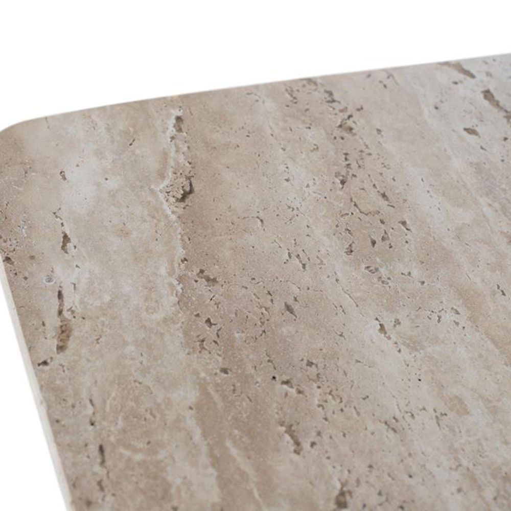 Item Code: 1847 This coffee table is a piece of timeless elegance that combines the natural beauty of travertine marble with the solidity of metal. Its marble top features an exquisite texture and unique tones, which add a touch of sophistication and distinction to any living room. The robust metal base provides stability and visual contrast, perfectly complementing the delicacy of the marble surface. With its versatile and timeless design, this coffee table becomes the center of attention in any environment, bringing style and functionality to your home.