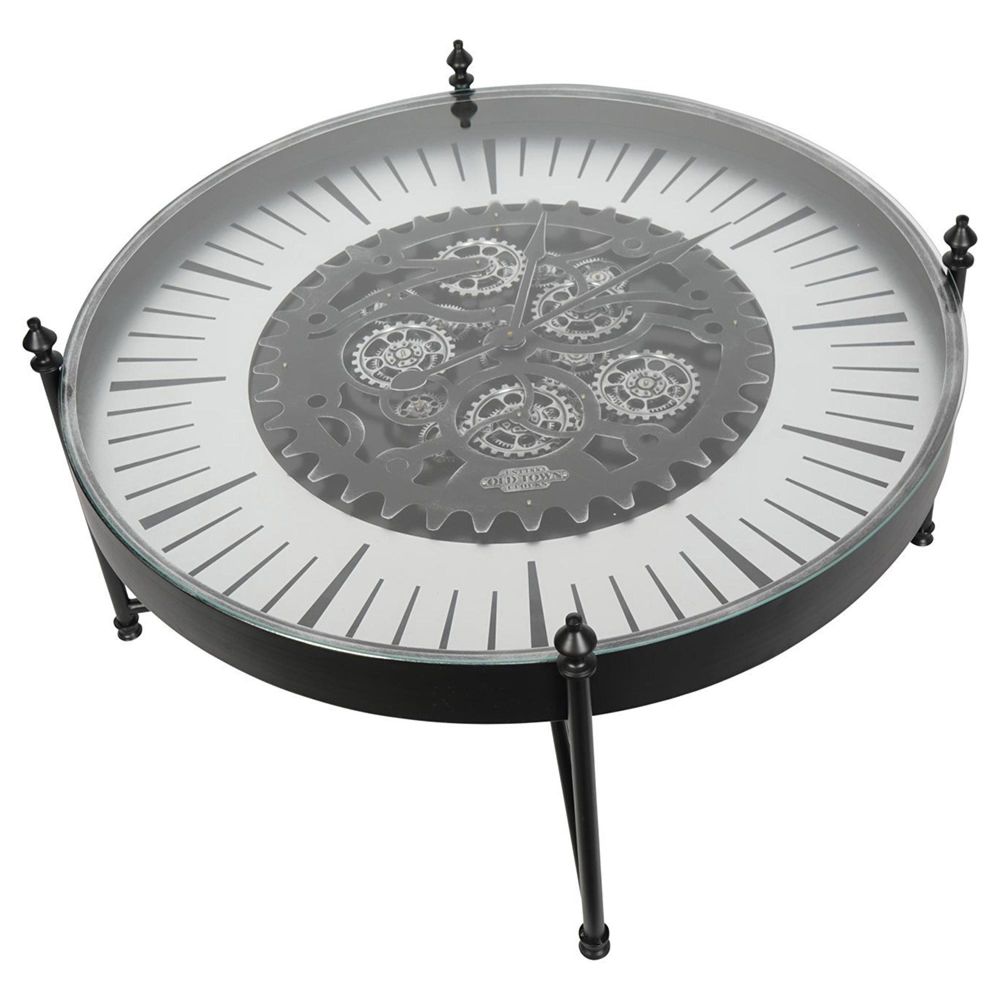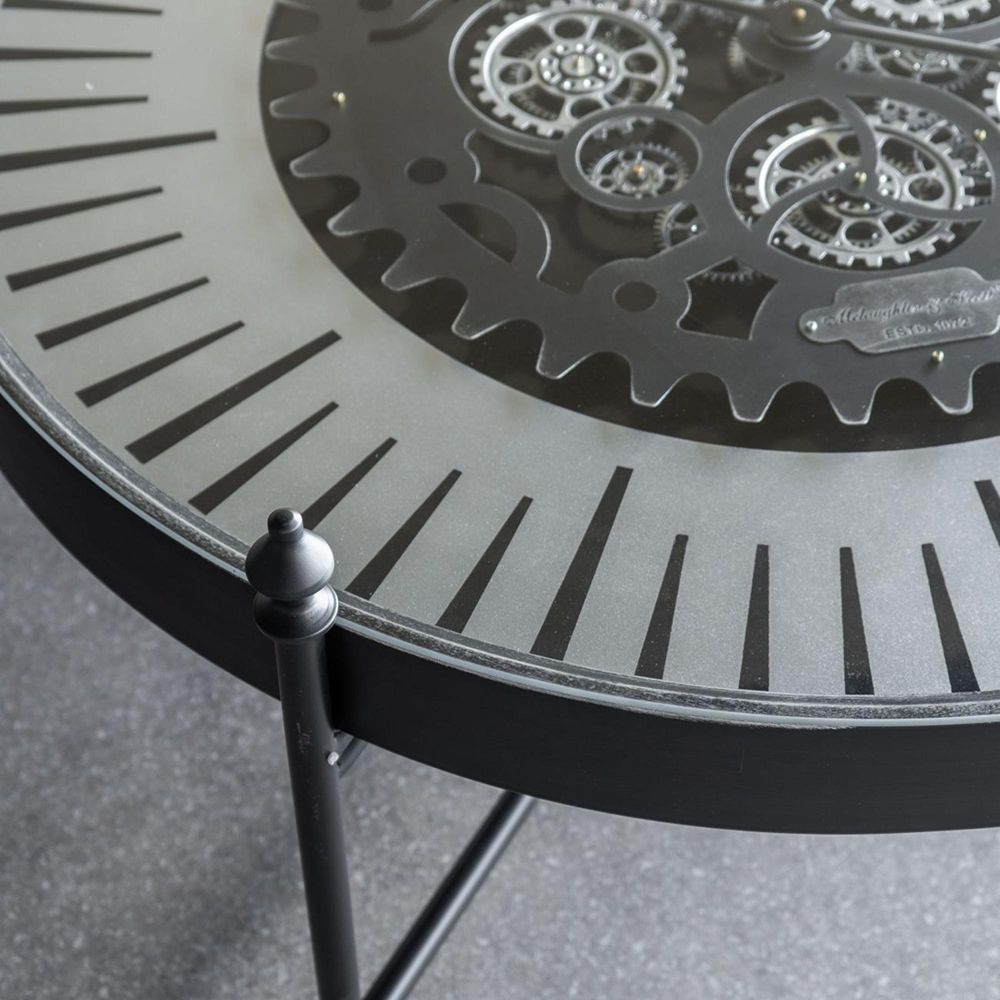Item Code: 705896 Introducing our Palladium Black Nickel Coffee Table, featuring a sleek black and nickel finish with moving gears. Crafted with precision, it's more than just a table it's a modern design marvel. Its silver and black colour scheme blends contemporary elegance with timeless style. With a glass-top round framed clock table and a mesmerising moving mechanism, it's both a centrepiece and a functional timepiece. Supported by a sturdy minimalist leg frame, its sleek black exterior exudes refinement, elevating any living space. Pair it effortlessly with any of our Palladium range for versatile interior design. Please note, indoor use only, requires 3 x AA batteries (not included). Dimensions: W100 x D100 x H51.5cm.Free Delivery
