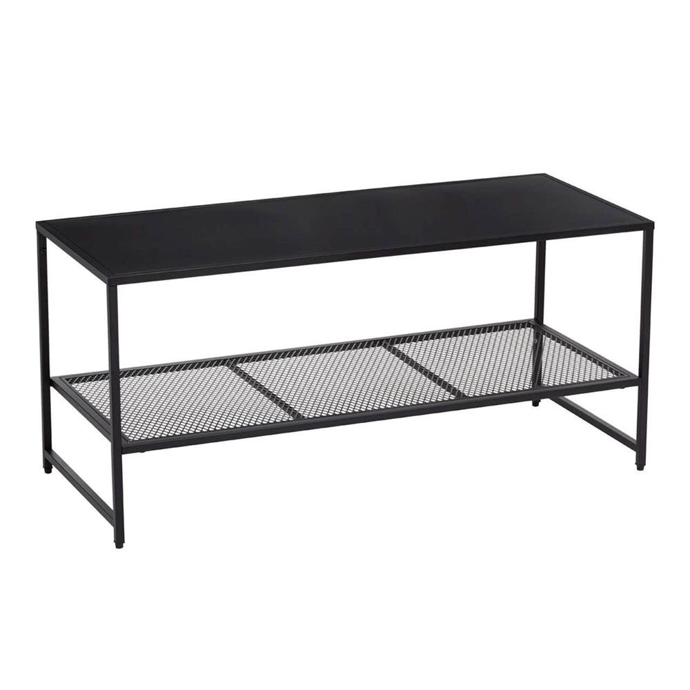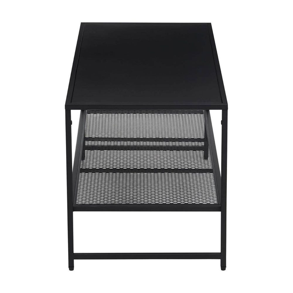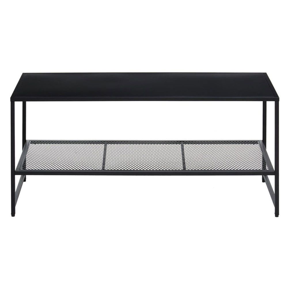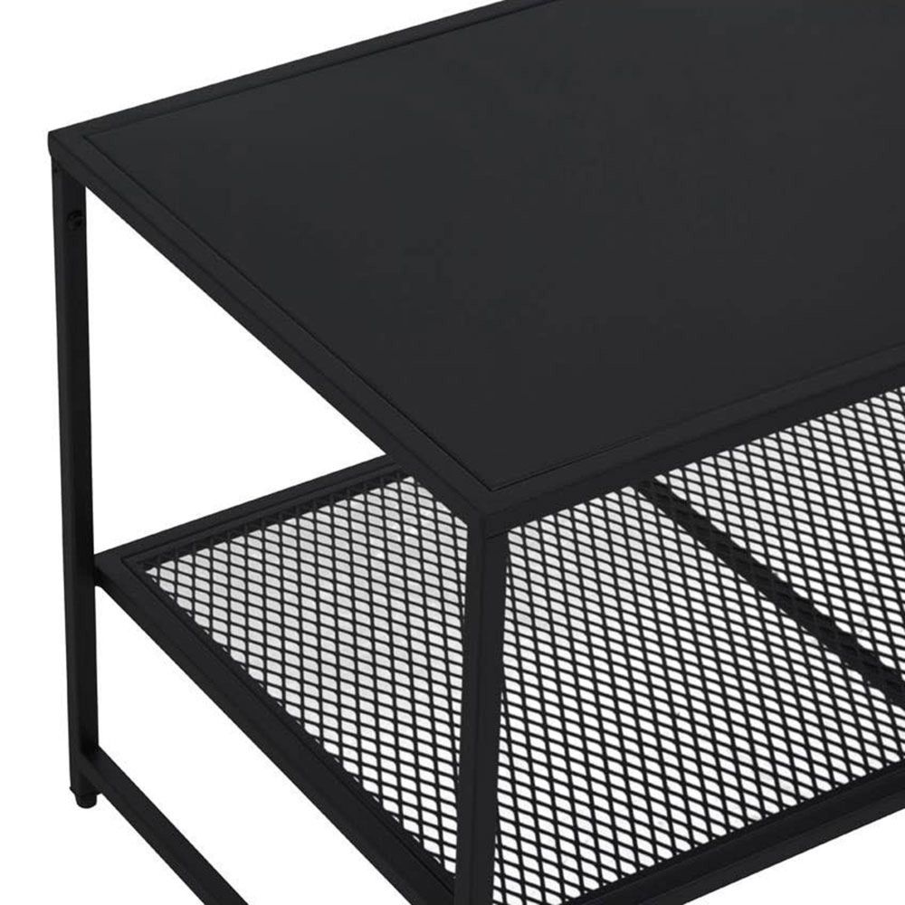 Item Code: 2406603 The Acero black metal coffee table with a clean silhouette offers a versatile space saving design for a variety of interior spaces.This coffee table with a simple and streamlined design will suit industrial living rooms. The powder coated black metal design will work next to a chair or sofa to rest books, remotes or drinks. An open mesh shelf at the bottom provides for added display or storage.