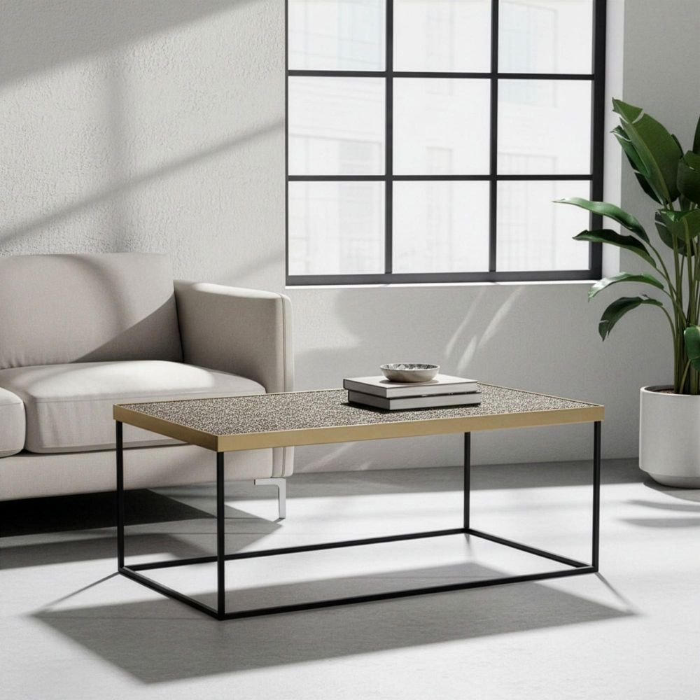 Item Code: 5529572 The Akola modern coffee table offers a metallic gold top resting above a sturdy structure of legs finished in a black shade.This sleek and modern coffee table features a metallic gold finished table top based on a sturdy black metal structure with interconnected legs. This contemporary table goes perfectly with modern and minimal interiors.Free DeliveryDelivery & Service Highlights: