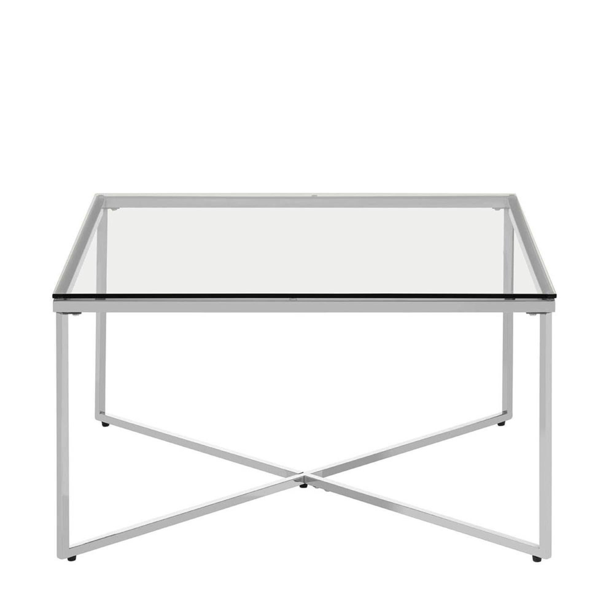 Allure Coffee Table - Square - Clear Glass - Silver Cross Base
