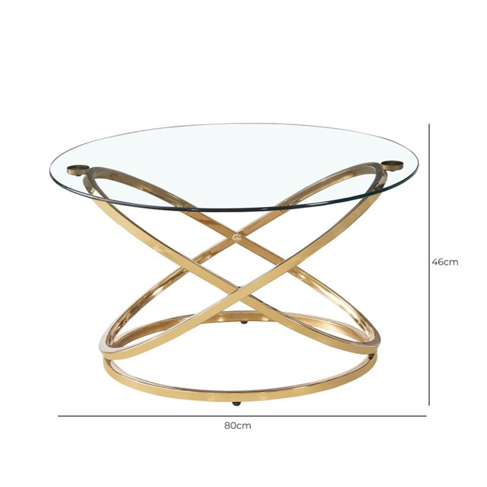 Rizzo Coffee Table - Round - Clear Glass and Gold Metal