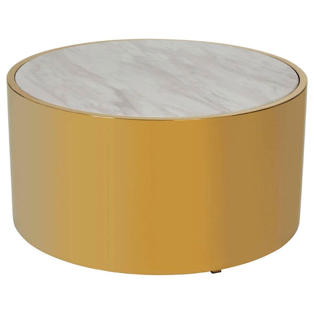 Carlox Coffee Table - Round - White Marble Effect with Gold Metal