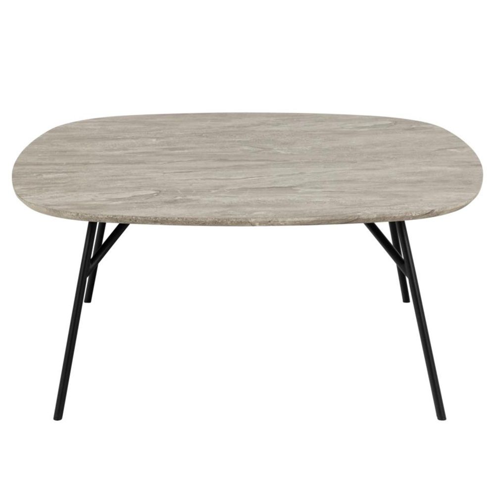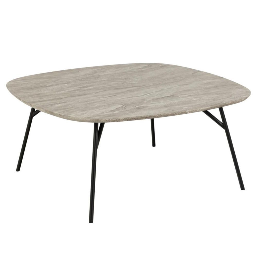 Item Code: H000023730 Caracas square coffee table top grey marble River rough paper base matt black rough powder coated steel. Crafted for modern allure this coffee table boasts a rounded square top with a chic grey marble look. Its aesthetic appeal results in a subtle yet expressive table adding a refined style to any living room. To enhance the table's sophistication the top is complemented by sleek black steel legs. FSC certified.Free Delivery