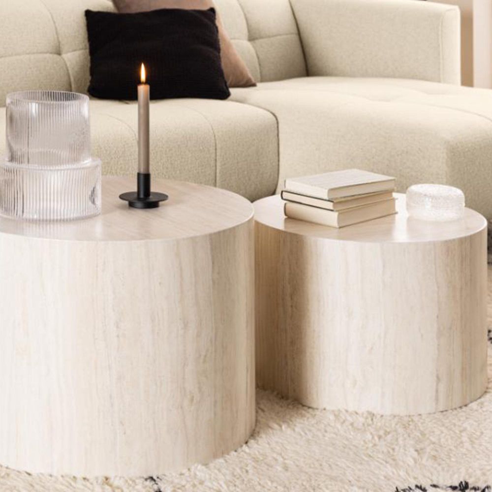 Dice Coffee Table - Round - Travertine Effect - Set of 2