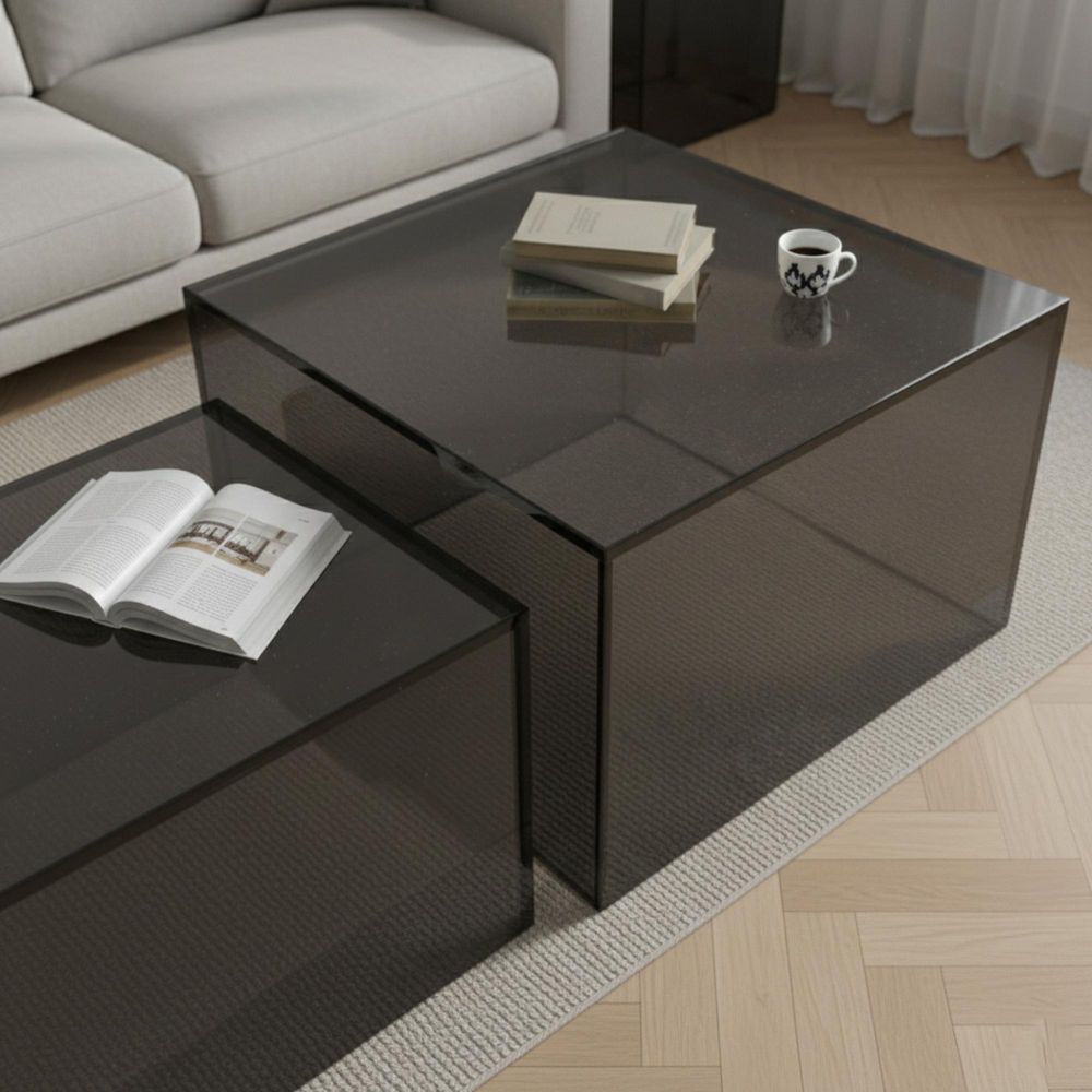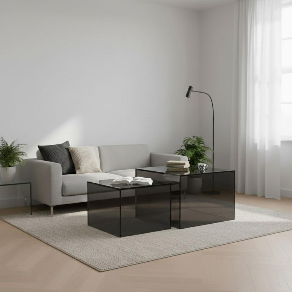 Dice Coffee Table - Smoked Glass - Square - Set of 2