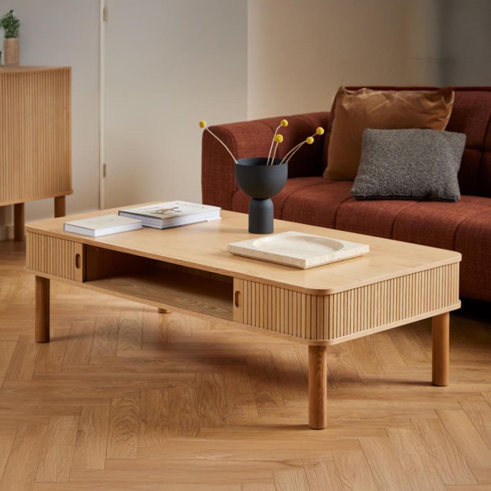 Langley Coffee Table - 2 Door - Fluted - Oak