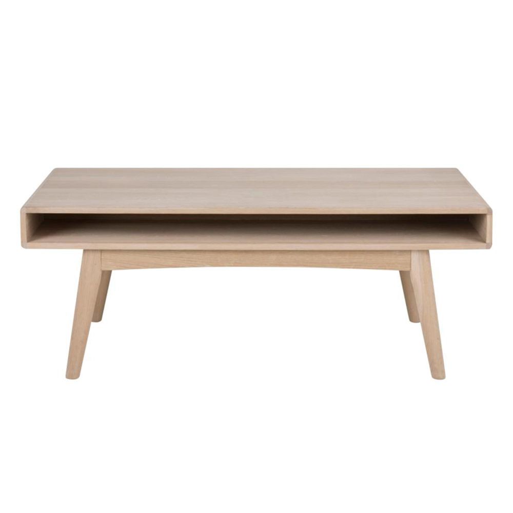 Item Code: 110129 Marte rectangular coffee table top and shelf white pigmented oiled oak veneer base white pigmented oiled oak with open compartment. Meet a sophisticated coffee table noticeable for its spacious open compartment. The top boasts an oak veneer and is paired with sturdy angled oak legs that lend the design a Scandinavian feel. Its white pigmented oiled finish only enhances the Nordic character of the design. FSC certified.Free Delivery