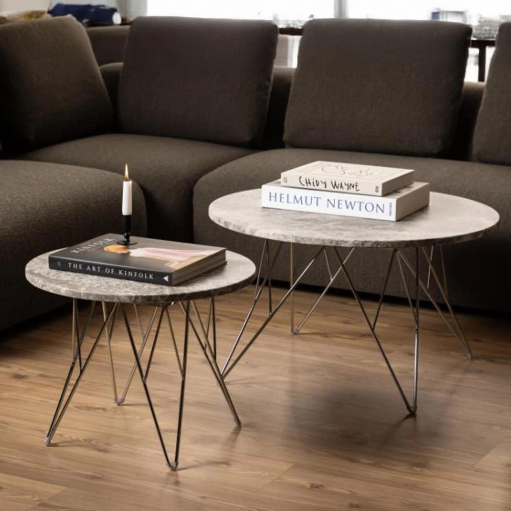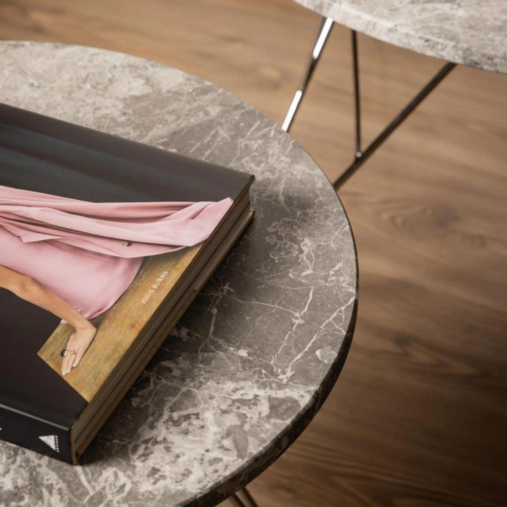 Prunus Coffee Table - Round - Brown Marble - with Chrome Hairpin Legs