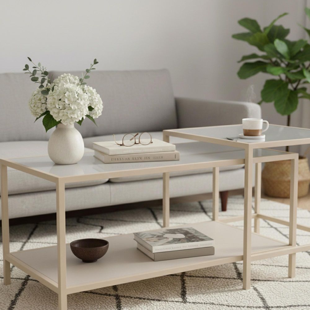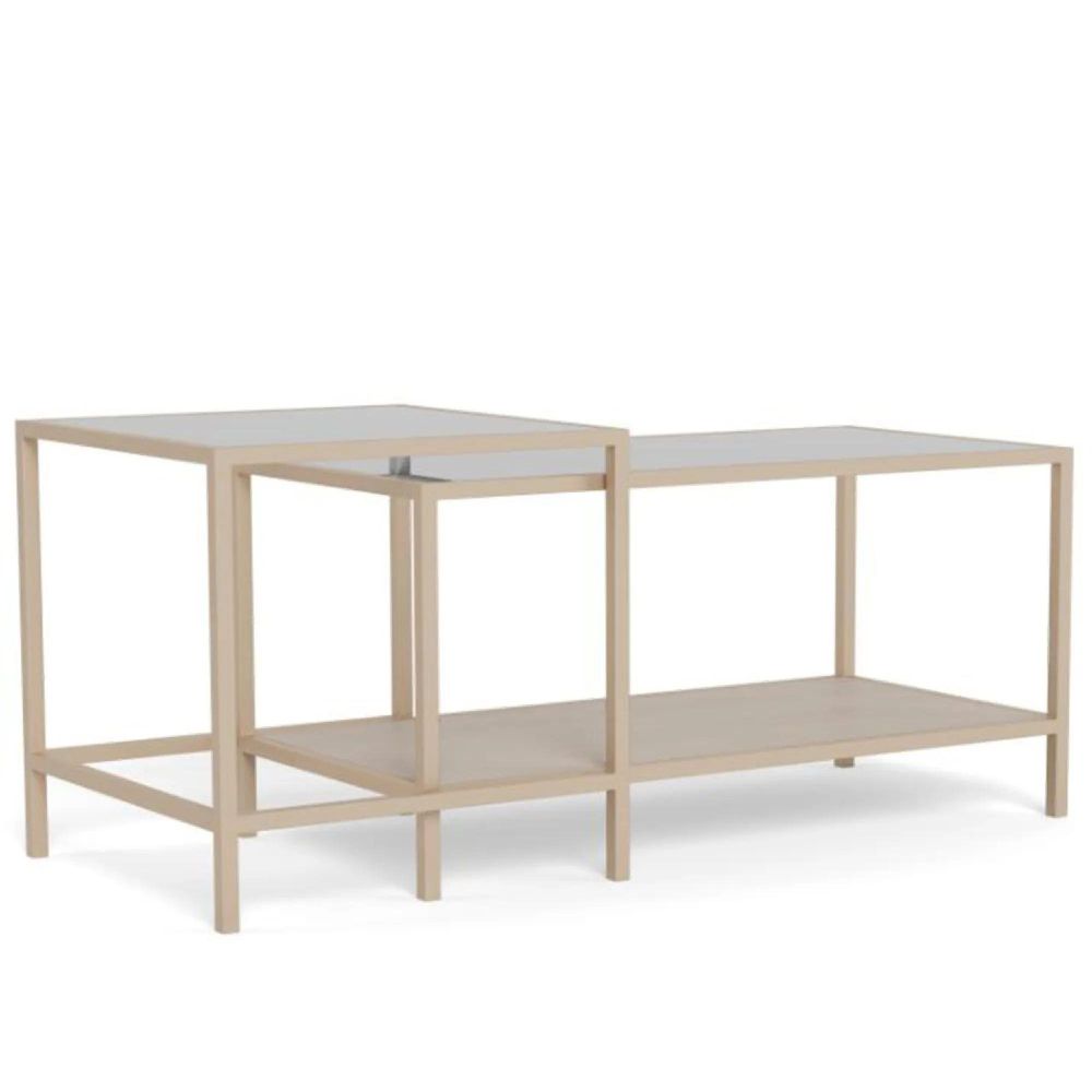 Item Code: 111726 Seaford square-rectangular coffee table set, top clear tempered glass, shelf grey rough melamine, base grey rough powder coated steel with set of 2 pcs. Designed in an industrial style, this coffee table set combines simple geometric shapes and materials in a calming grey colour. The top boasts a clear, tempered glass, which is complemented by a grey steel frame. With a grey shelf, the rectangular table provides ample storage space too. Such a versatile design will easily find its spot in any living room.Free Delivery