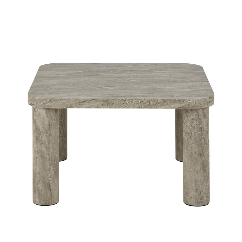 Item Code: 110078 Solano square coffee table, top and base grey marble River rough paper. Dressed in an elegant grey marble look, this coffee table engages with the context of its space, lending it a unique character. The combination of chunky, robust legs and a square top with rounded corners turn it into a showstopper. It is a flattering design that complements many sofa styles.Free Delivery