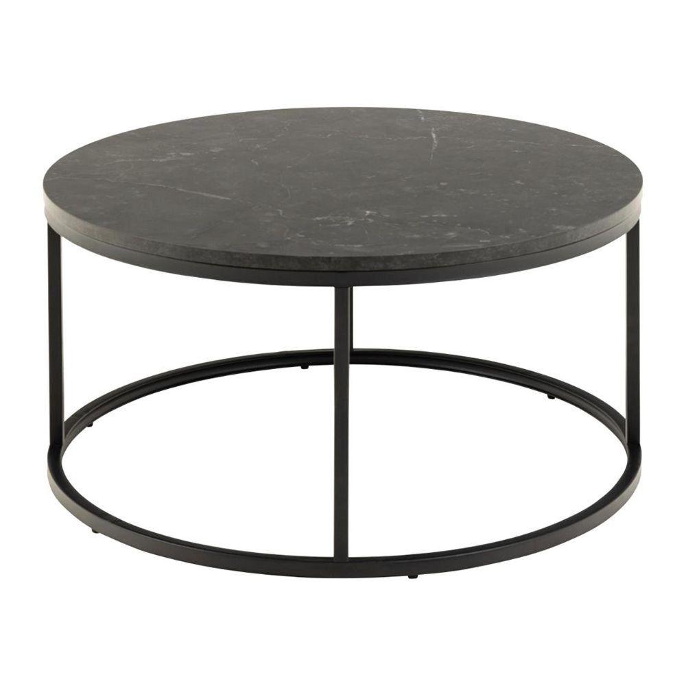 Item Code: 98861 Spiro round coffee table, top black marble Izmir melamine, base matt black rough powder coated steel. Thanks to the distinctive round top and matching round base, this coffee table will create a calming flow in your living room. The black marble look gives the table a modern feel and when combined with the black powder-coated metal base, it will fit into most homes. Now, enjoy that tea in style.Free Delivery