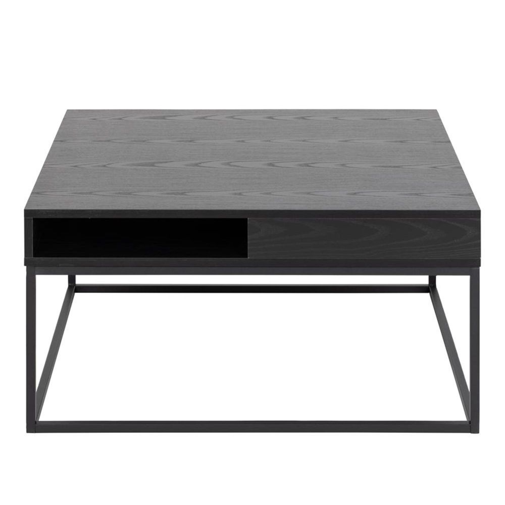 Item Code: 95654 Willford square coffee table, top ash black rough melamine, base matt black rough powder coated steel with open compartment. The coffee table is both stylish and practical. The open compartments let you store your bits and bobs while the spacious tabletop offers plenty of space to showcase decor. The rough and matt black ash look surface adds a natural feel to the table.Free Delivery