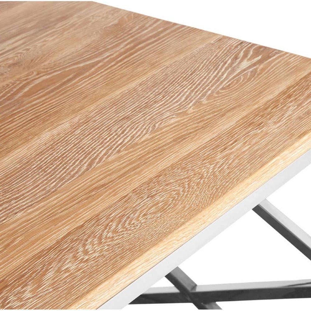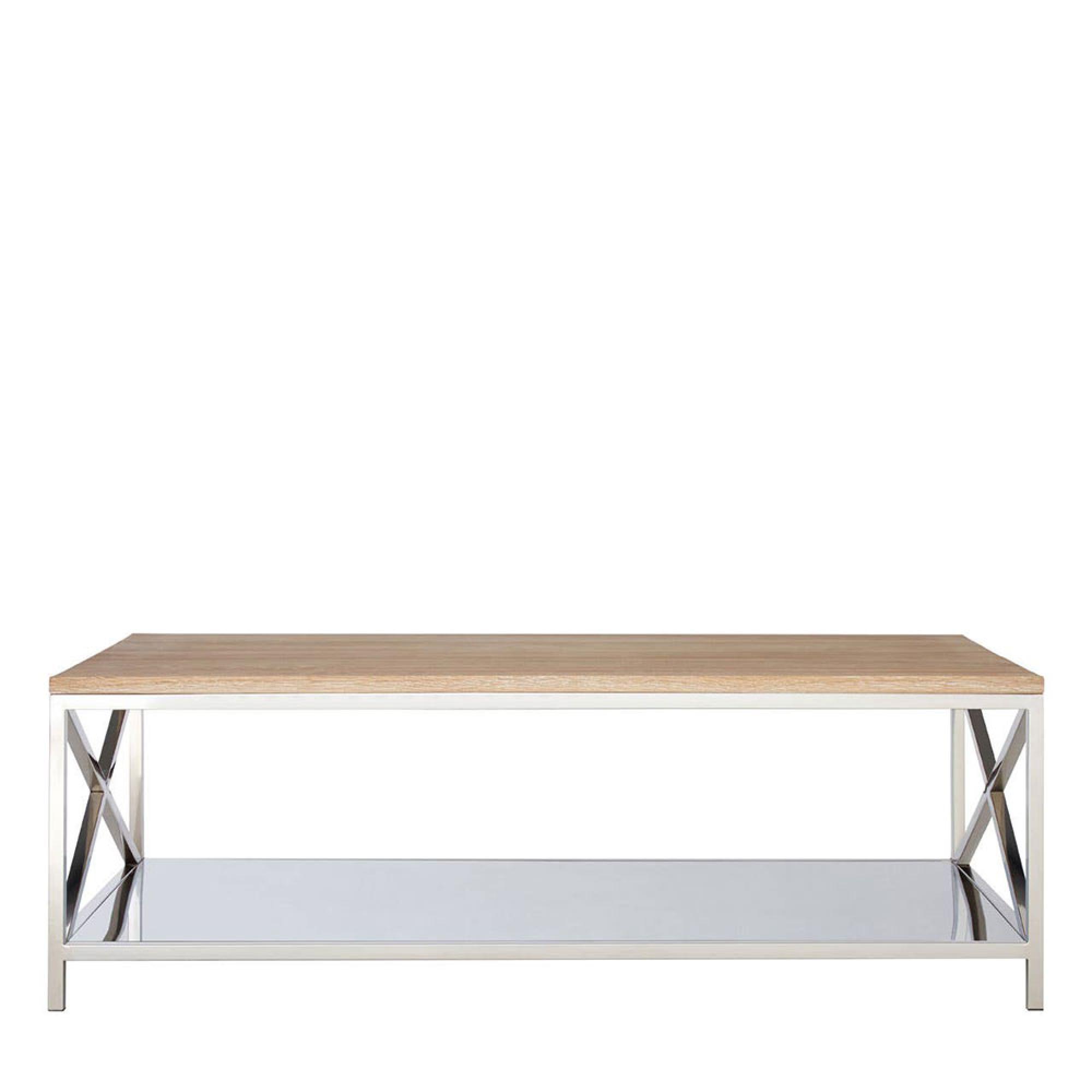 Item Code: 5501148 This table is comprised of an oak wood surface on top of polished stainless steel with highly reflective lower shelf.
