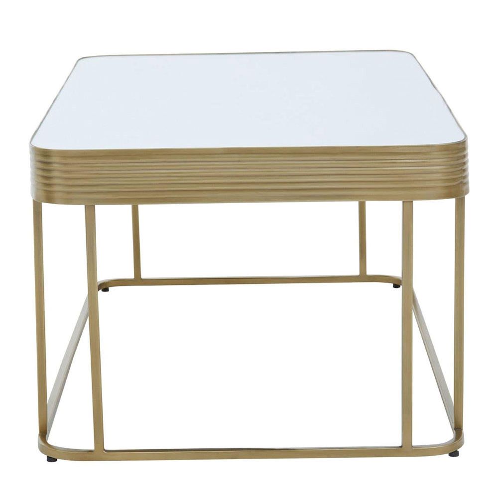 Item Code: 5528762 This accent coffee table will elevate the modern home decor with its clean and simple design.The Ella coffee table creates an elegant look with a series of gold finish lines forming its frame. A mirrored glass sits atop the minimalist frame with a border in decorative texture that matches the open base.