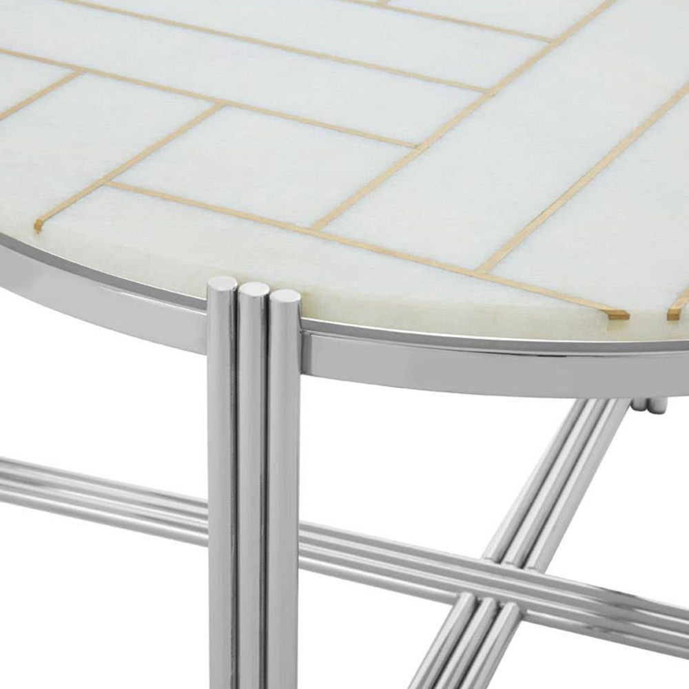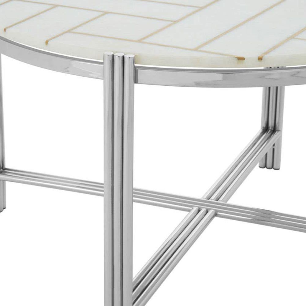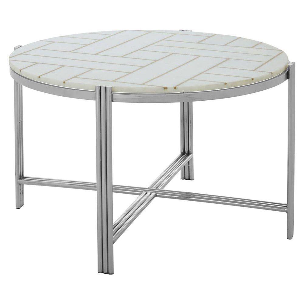 Eva Coffee Table - Round - White Marble with Silver Metal