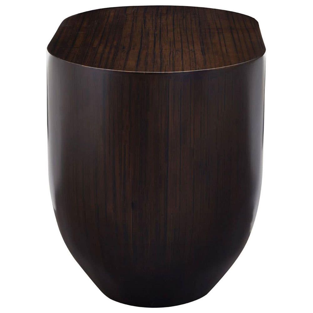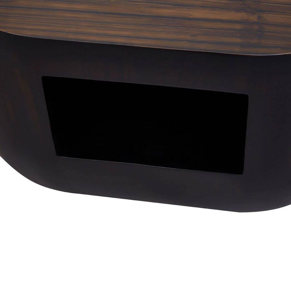 Item Code: 5527575 This natural bamboo side table in dark hues creates a gently curved understated look, well suited for contemporary decors.Handcrafted from bamboo, this side table has an oblong design with contoured sides. Rich grain accents the design that boasts ample natural warmth and character. A square cutout opening intersects the smooth base and allows storing small items.