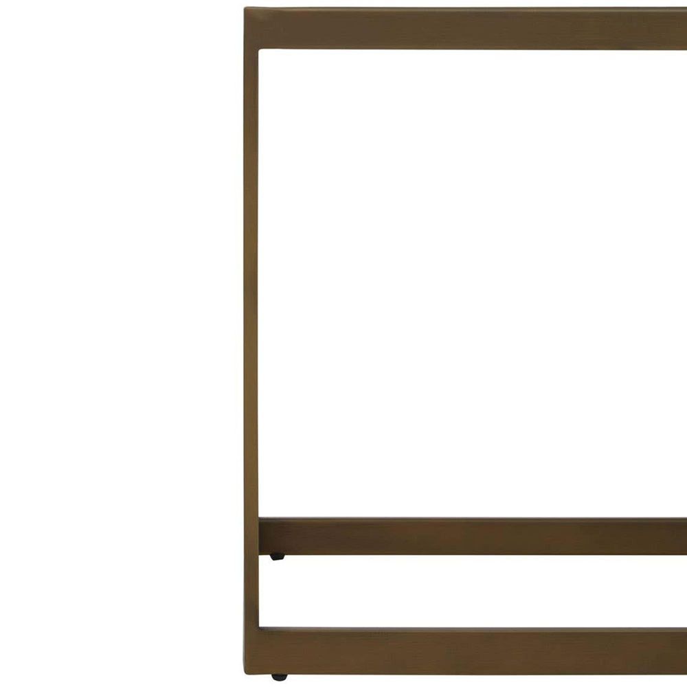 Item Code: 5528620 Add minimalist style to home decor with the Grenoble coffee table featuring clean lines and a slender profile.This coffee table exudes elegance with a sleek wood top and steel frame. The open sledge base with a brushed brass finish and the oak veneer wood top elevate visual appeal.