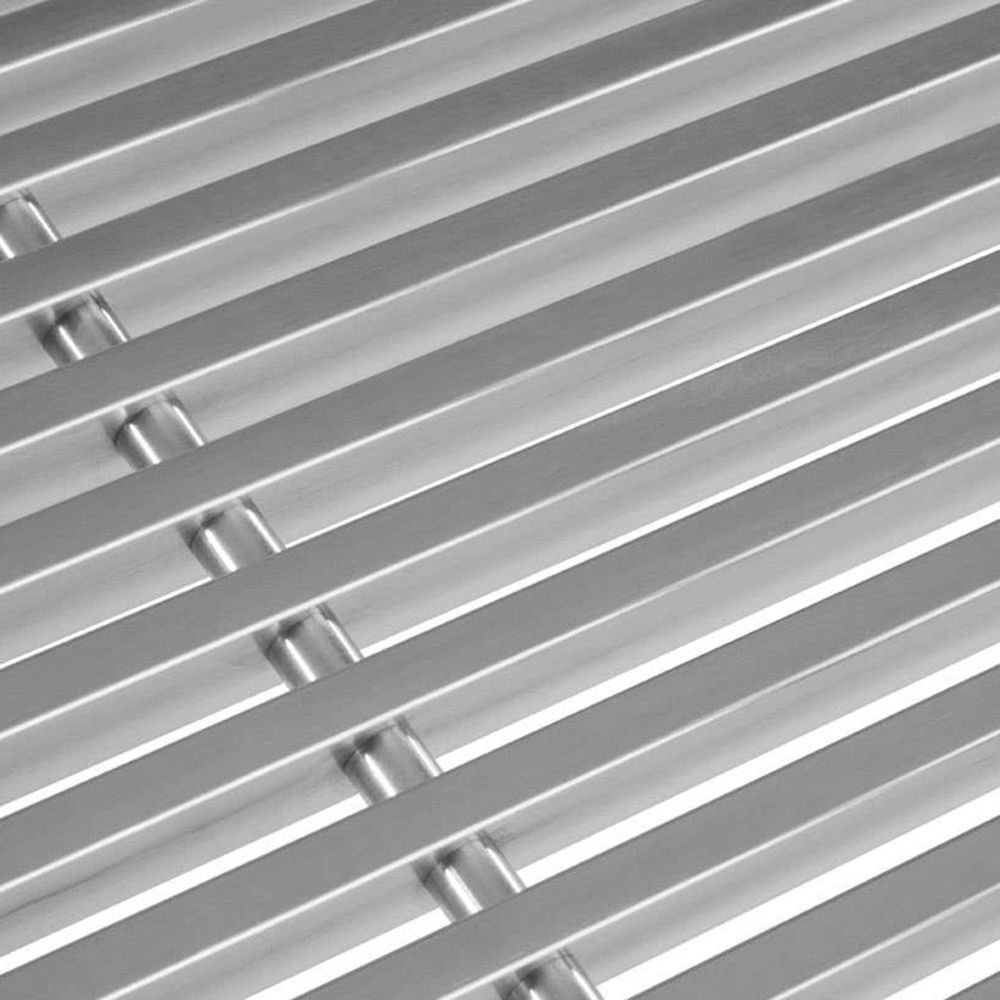 Item Code: 5502733 Elegantly crafted from metallic bars, the Horizon round edge coffee table will add a contemporary luxe accent to the living room.Formed into a rectangular shape, this coffee table features a brushed stainless steel construction finished in a reflective silver coloured coating. The linear detailing gives it a symmetrical, aesthetically pleasing look and lends it a distinctive edge.