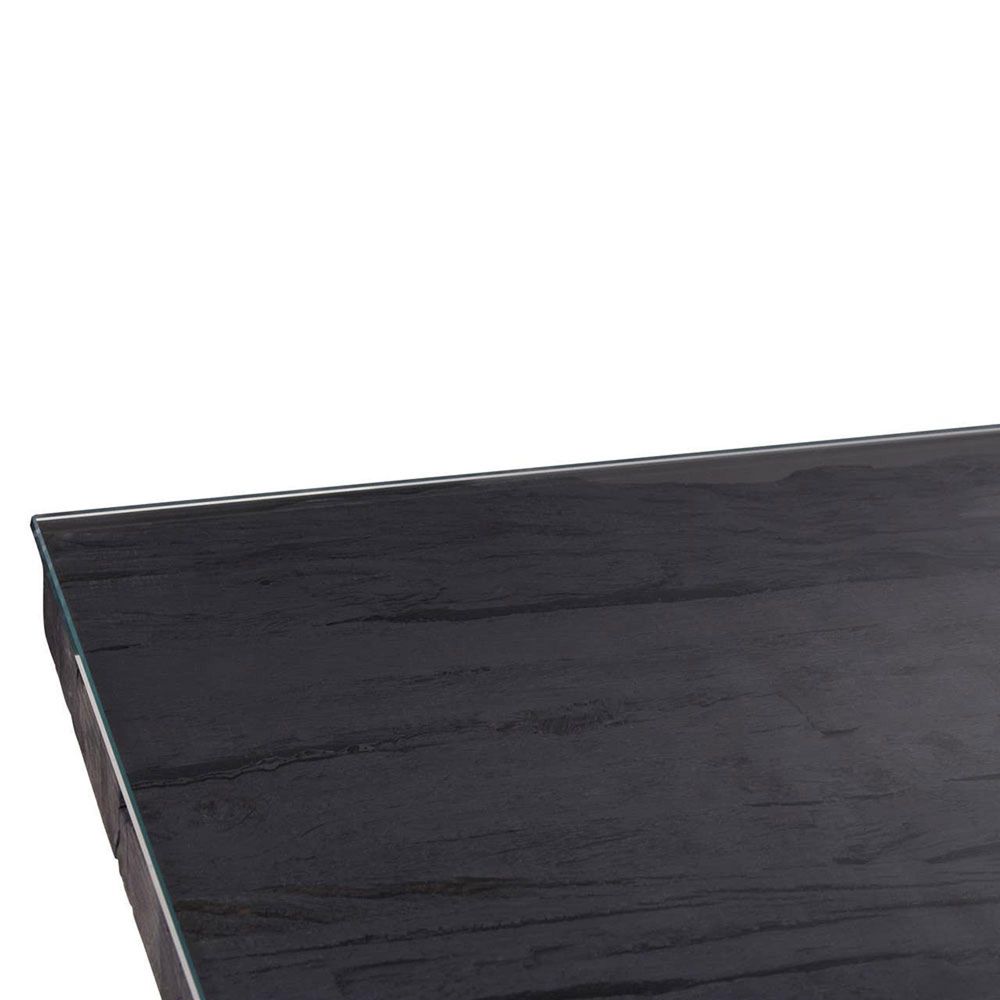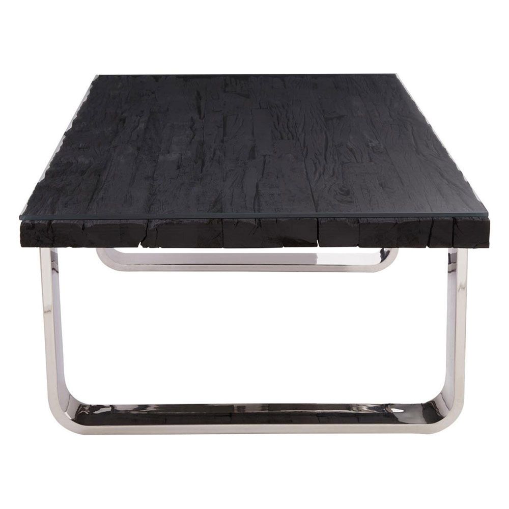 Item Code: 5527841 The Kerala console table features a black natural wood top with glass on it and two U shaped stainless steel legs creating a modern look.This black console table has silver U shaped stainless steel legs, giving it a modern look. The top is black natural wood with clear glass on top, creating an overall sleek look to complement a variety of spaces.