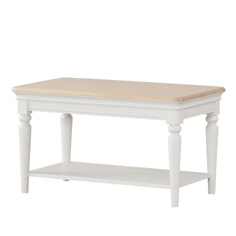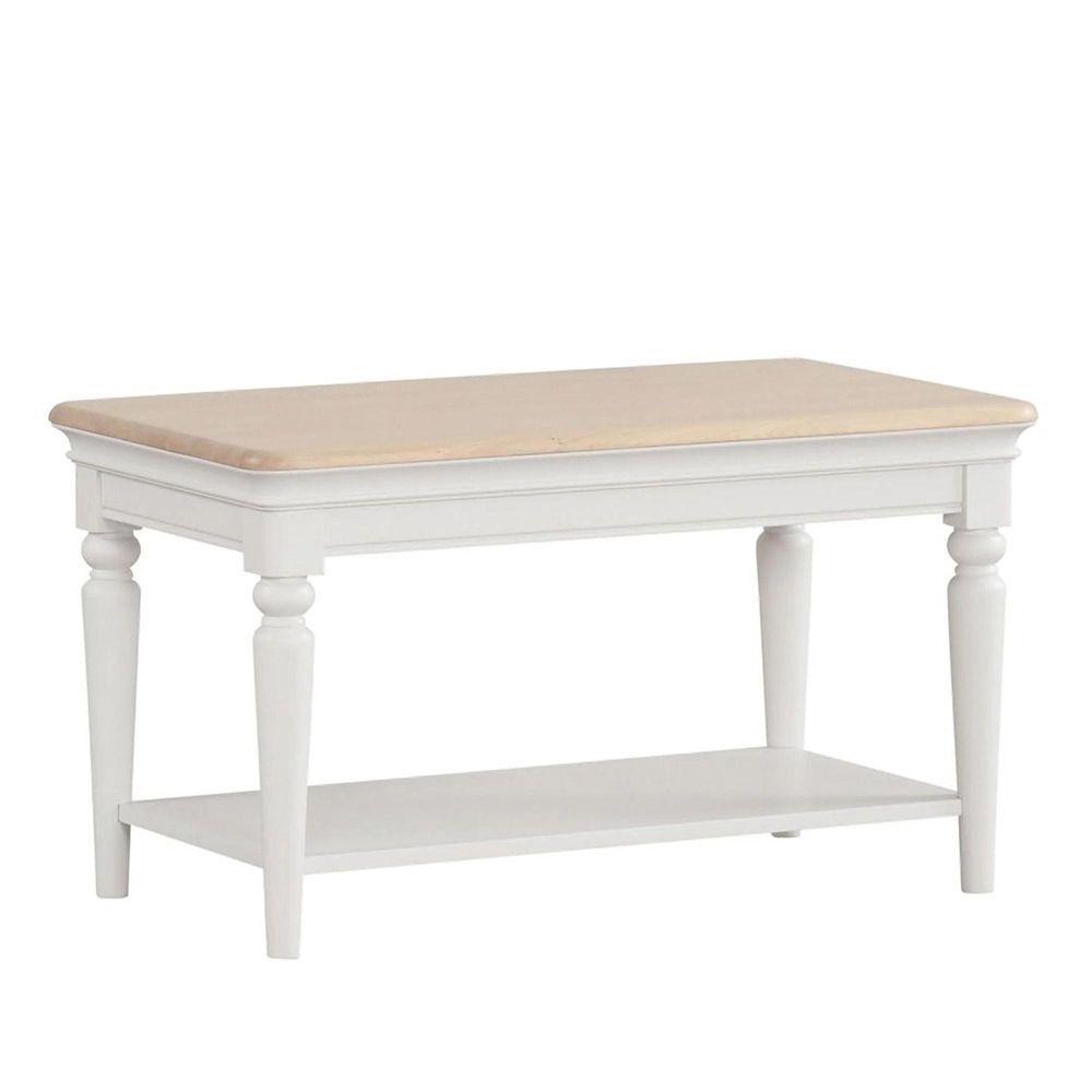 Add a touch of modern country elegance to your living space with this painted coffee table. Featuring beautifully turned legs, a solid oak top, and a practical lower shelf, it blends beauty and function with ease. Perfect for keeping magazines, books, or decor close at hand, this timeless piece brings warmth and character to any room.