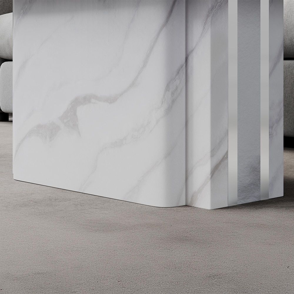 The Antonio White Marble Coffee Table is designed to bring a sense of luxury and balance to your living room. Made from white engineered marble, it offers the refined look of natural stone with the strength and durability needed for everyday use. The smooth surface is finished with a bevelled edge, adding subtle detail while keeping the overall design clean and timeless.