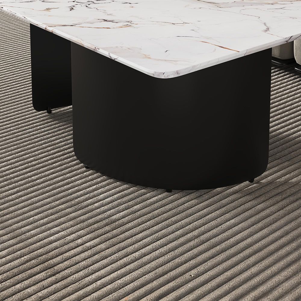 The marble tabletop showcases natural veining, making every piece unique. Its smooth surface is practical for everyday use, while still feeling special enough for entertaining guests. Supporting the top are two striking black pedestal bases with a rounded, sculptural shape, offering excellent stability and a strong visual presence. The result is a coffee table that feels considered, well-made, and built to be enjoyed for years.