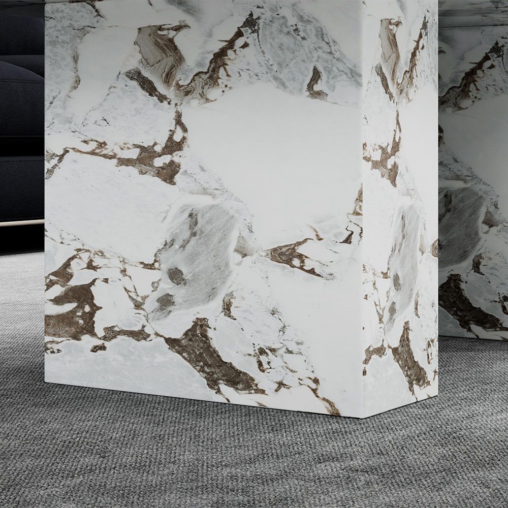 - Marble tabletop and base with Calcutta marble finish