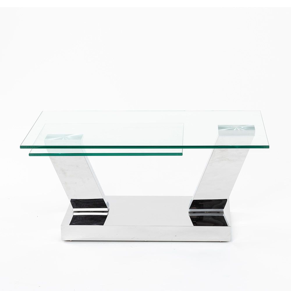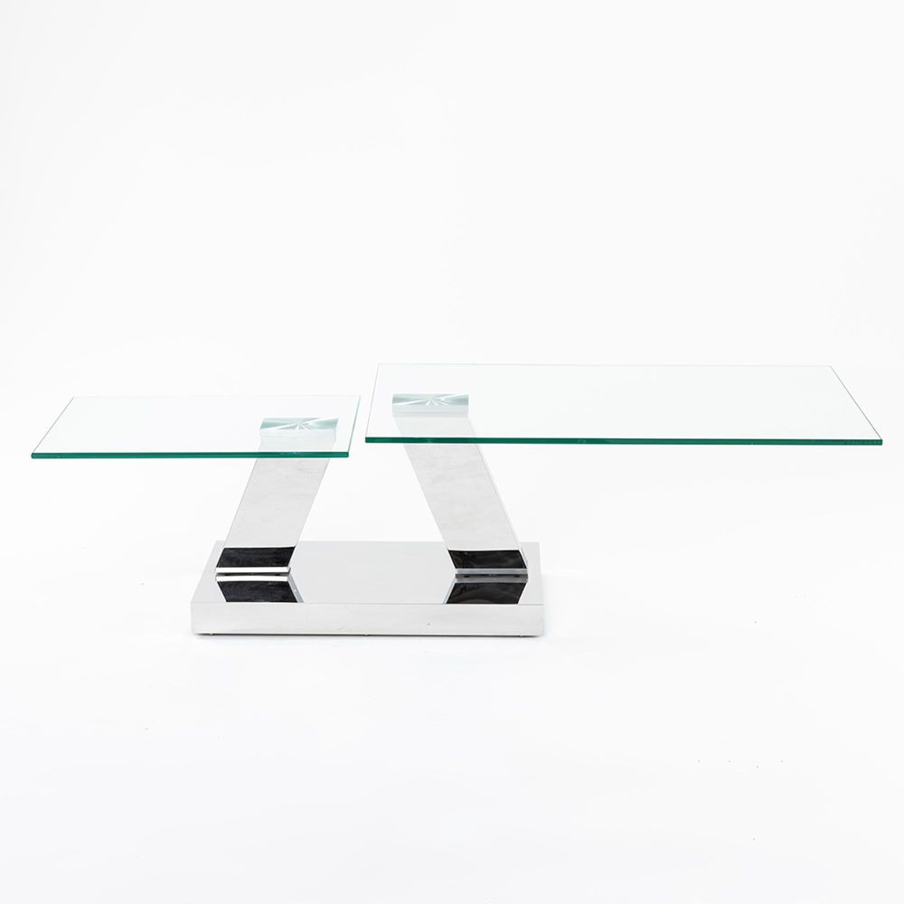 The Fusion Swivel Glass Top Coffee Table is a masterclass in design and versatility. Crafted for modern living spaces that value both form and function, this statement piece features a sleek, rectangular, clear glass top that rests gracefully above a chrome base. What sets the Fusion table apart is its innovative swivel design. The two "magic wing" glass top extensions glide out smoothly, transforming the table to suit your space and your needs.