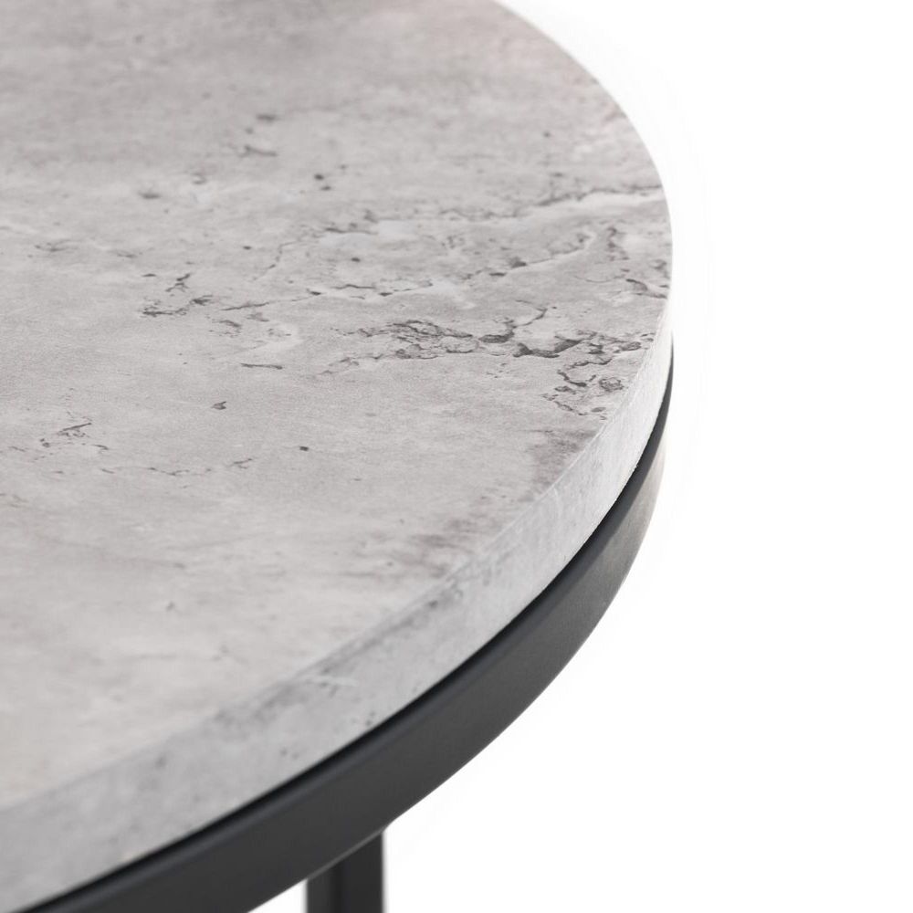 Item Code: STA107 Simplistic in design with a contemporary style, the Staten Round Nesting Coffee Tables will add a stunning industrial look to any living and dining area. Constructed from a black coated metal frame, complemented by a striking concrete effect tops, to create a very stylish, modern product. Part of the Julian Bowen Staten Dining and Occasional Collection.
