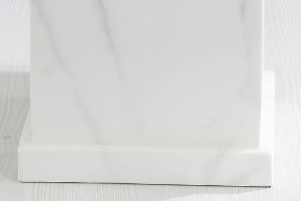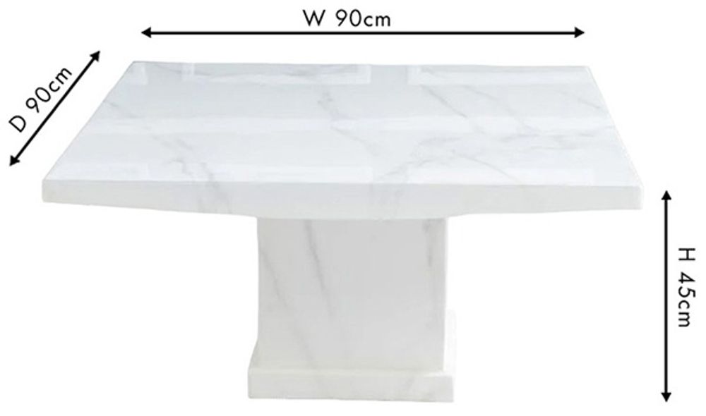 A true testament to understated elegance, the Turin White Marble Square Coffee Table is the perfect centrepiece for a modern living room. Featuring a polished white marble top and matching pedestal base, its square shape and minimalist design provide the ideal balance of form and function. Whether used for casual coffee breaks or as a stylish platform for decor, this table adds sophistication to any setting.