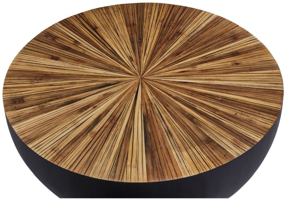 Item Code: 5527563 Add a touch elegance to the living room with this coffee table in natural warmth, grain and texture. Skilfully handcrafted from renewable rubberwood, this small coffee table features a smooth, rounded design. The minimalist, polyurethane finish base is contrasted with ebony bamboo top in a stunning sunburst pattern.